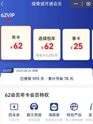 当然,如果你即没有信用卡,也不在线上购物,那就没必要开通62VIP了!