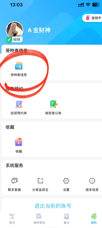 1,打开金苗宝app,点击我的--受种者信息进入;