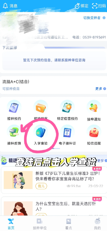 2,登录后点击入学查验