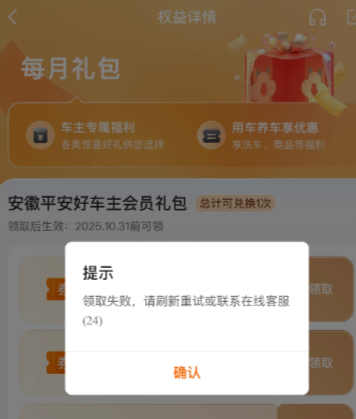 有的车主在领取礼包的时候显示领取失败,遇到这样的情况的话可以找客服反馈一下,或者是卸载重新安装就可以了。